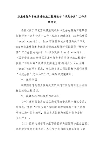 【七哥公文】2024年:房屋建筑和市政基础设施工程招投标“评定分离”工作实施细则+更多免费公文+VX:QiGeGongWen2024