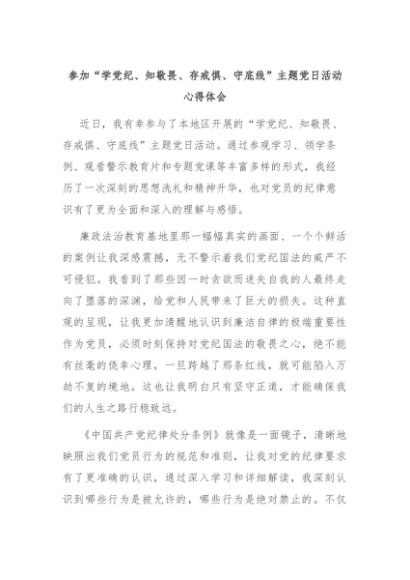 【七哥公文】2024年:参加“学党纪、知敬畏、存戒惧、守底线”主题党日活动心得体会+更多免费公文+VX:QiGeGongWen2024
