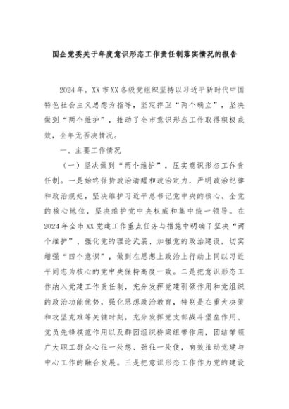 / 【七哥公文】2024年:国企党委关于年度意识形态工作责任制落实情况的报告+更多免费公文+VX:QiGeGongWen2024