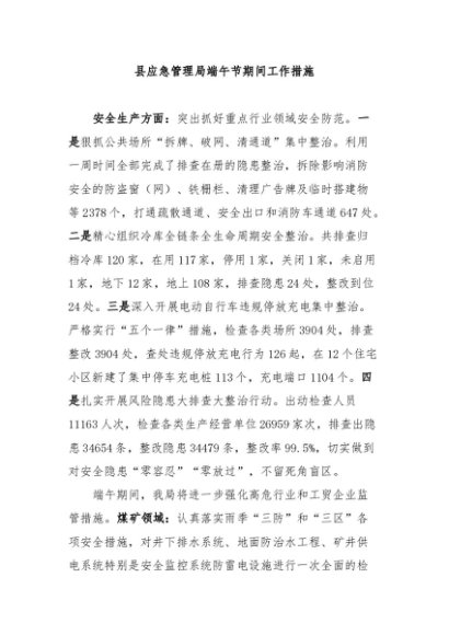 【七哥公文】2024年:县应急管理局端午节期间工作措施+更多免费公文+VX:QiGeGongWen2024