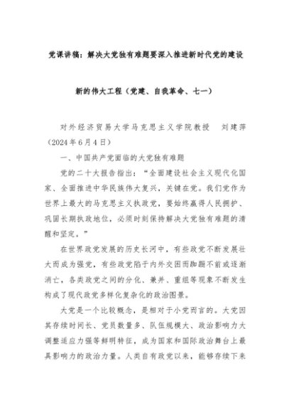 【七哥公文】2024年:党课讲稿:解决大党独有难题要深入推进新时代党的建设新的伟大工程(党建、自我革命、七一)+更多免费公文+VX:QiGeGongWen2024