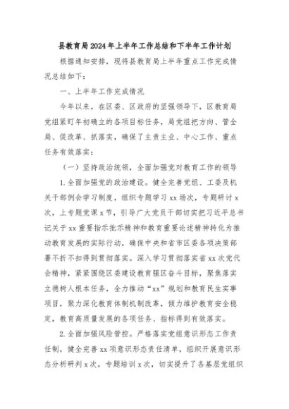 / 【七哥公文】2024年:县教育局2024年上半年工作总结和下半年工作计划+更多免费公文+VX:QiGeGongWen2024