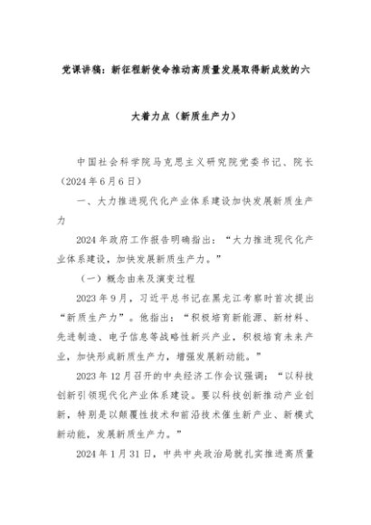 【七哥公文】2024年:党课讲稿:新征程新使命 推动高质量发展取得新成效的六大着力点(新质生产力)+更多免费公文+VX:QiGeGongWen2024