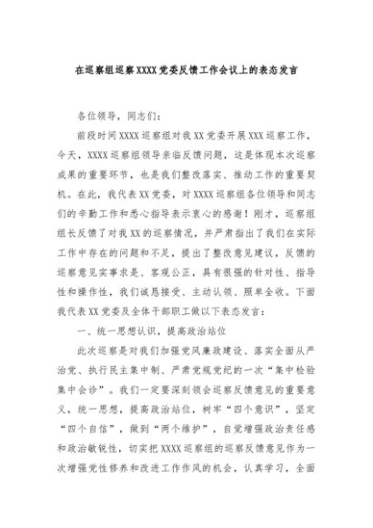 / 【七哥公文】2024年:在巡察组巡察XXXX党委反馈工作会议上的表态发言+更多免费公文+VX:QiGeGongWen2024