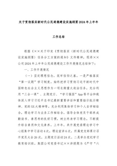 【七哥公文】2024年:关于贯彻落实新时代公民道德建设实施纲要2024年上半年工作总结+更多免费公文+VX:QiGeGongWen2024