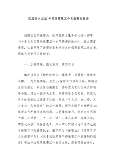 / 【七哥公文】2024年:区编委办2023年保密管理工作自查整改报告+更多免费公文+VX:QiGeGongWen2024