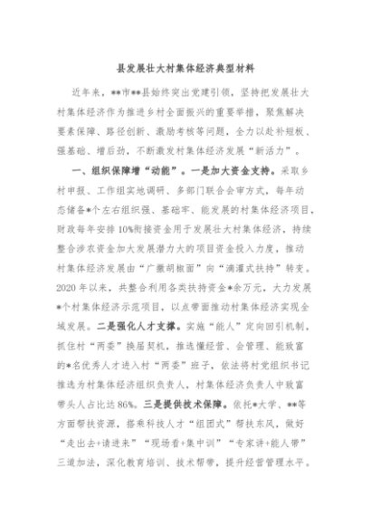 / 【七哥公文】2024年:县发展壮大村集体经济典型材料+更多免费公文+VX:QiGeGongWen2024