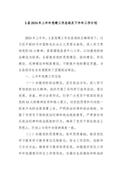 / 【七哥公文】2024年:X县2024年上半年党建工作总结及下半年工作计划+更多免费公文+VX:QiGeGongWen2024