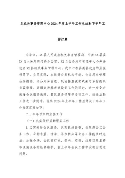 【七哥公文】2024年:县机关事务管理中心2024年度上半年工作总结和下半年工作打算+更多免费公文+VX:QiGeGongWen2024