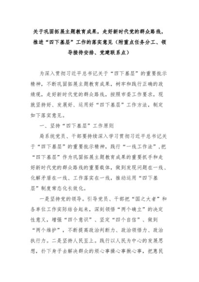 【七哥公文】2024年:关于巩固拓展主题教育成果,走好新时代党的群众路线,推进“四下基层”工作的落实意见(附重点任务分工、领导接待安排、党建联系点)+更多免费公文+VX:QiGeGongWen2024