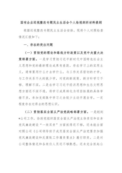 【七哥公文】2024年:国有企业巡视整改专题民主生活会个人检视剖析材料提纲+更多免费公文+VX:QiGeGongWen2024