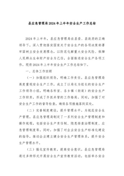 / 【七哥公文】2024年:县应急管理局2024年上半年安全生产工作总结+更多免费公文+VX:QiGeGongWen2024
