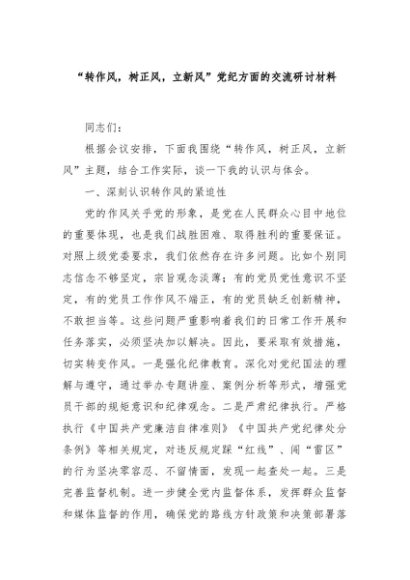 / 【七哥公文】2024年:“转作风,树正风,立新风”党纪方面的交流研讨材料+更多免费公文+VX:QiGeGongWen2024
