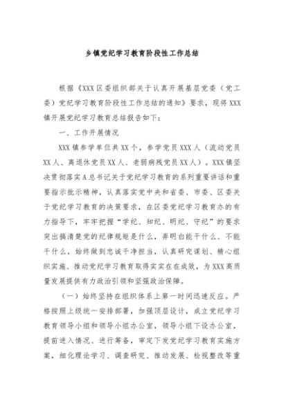 / 【七哥公文】2024年:乡镇党纪学习教育阶段性工作总结+更多免费公文+VX:QiGeGongWen2024