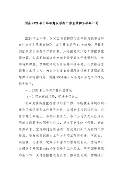 / 【七哥公文】2024年:国企2024年上半年意识形态工作总结和下半年计划+更多免费公文+VX:QiGeGongWen2024