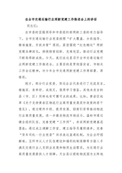 / 【七哥公文】2024年:在全市交通运输行业两新党建工作推进会上的讲话+更多免费公文+VX:QiGeGongWen2024