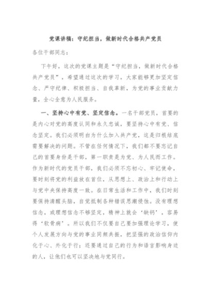 / 【七哥公文】2024年:党课讲稿:守纪担当,做新时代合格共产党员+更多免费公文+VX:QiGeGongWen2024