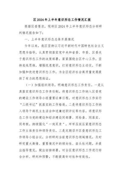 / 【七哥公文】2024年:区2024年上半年意识形态工作情况汇报+更多免费公文+VX:QiGeGongWen2024