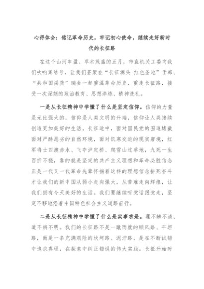 【七哥公文】2024年:心得体会:铭记革命历史,牢记初心使命,继续走好新时代的长征路+更多免费公文+VX:QiGeGongWen2024