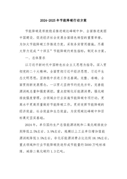 / 【七哥公文】2024年:2024-2025年节能降碳行动方案+更多免费公文+VX:QiGeGongWen2024