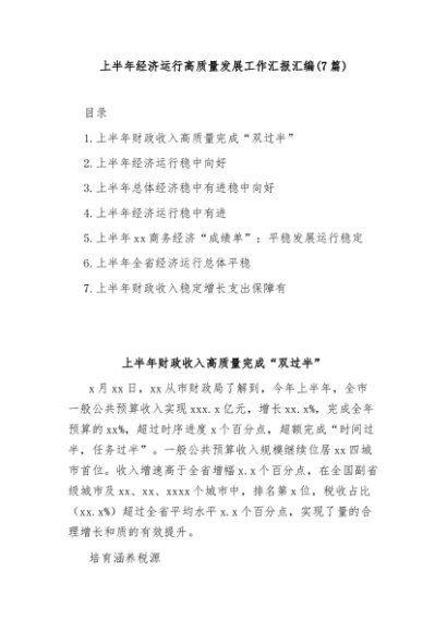 / 【七哥公文】2024年:(7篇)上半年经济运行高质量发展工作汇报汇编+更多免费公文+VX:QiGeGongWen2024