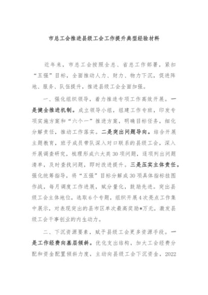 / 【七哥公文】2024年:市总工会推进县级工会工作提升典型经验材料+更多免费公文+VX:QiGeGongWen2024