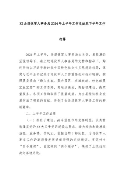 【七哥公文】2024年:XX县退役军人事务局2024年上半年工作总结及下半年工作打算+更多免费公文+VX:QiGeGongWen2024