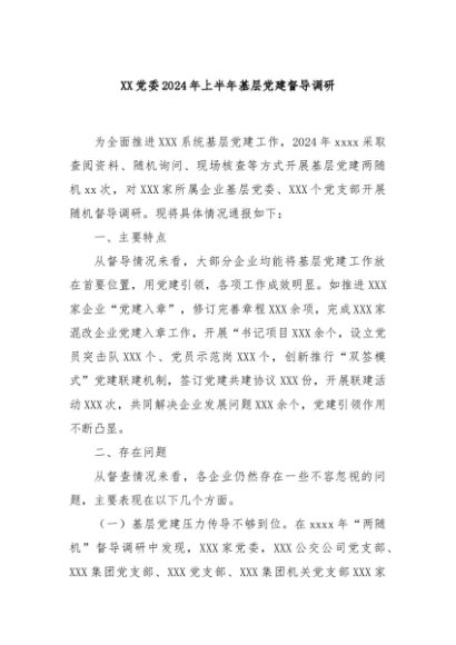 / 【七哥公文】2024年:XX党委2024年上半年基层党建督导调研+更多免费公文+VX:QiGeGongWen2024