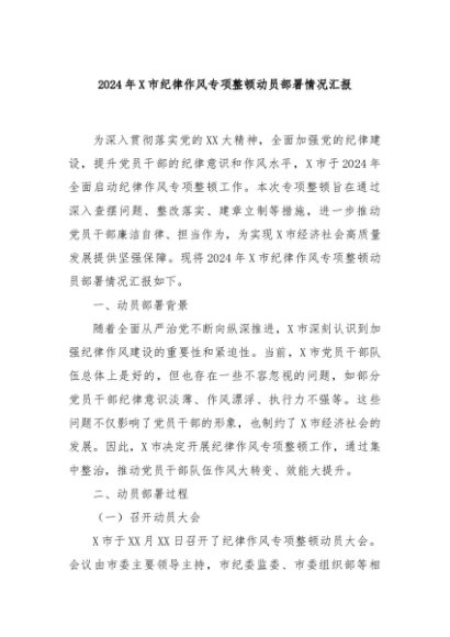/ 【七哥公文】2024年:2024年X市纪律作风专项整顿动员部署情况汇报+更多免费公文+VX:QiGeGongWen2024