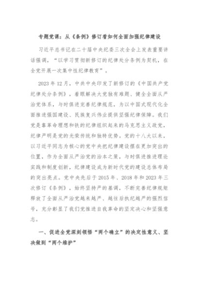 / 【七哥公文】2024年:专题党课:从《条例》修订看如何全面加强纪律建设+更多免费公文+VX:QiGeGongWen2024