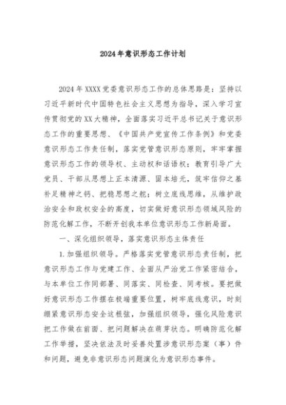 / 【七哥公文】2024年:2024年意识形态工作计划+更多免费公文+VX:QiGeGongWen2024