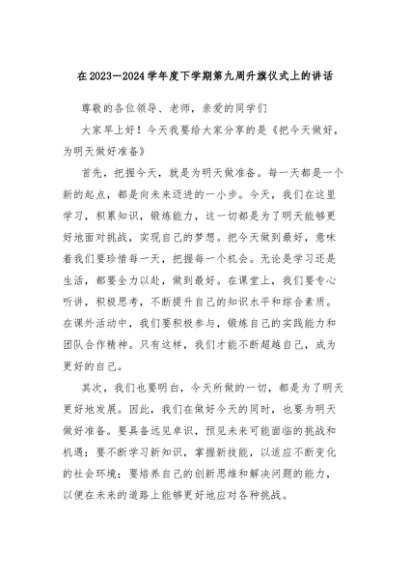 【七哥公文】2024年:在2023-2024学年度下学期第九周升旗仪式上的讲话+更多免费公文+VX:QiGeGongWen2024