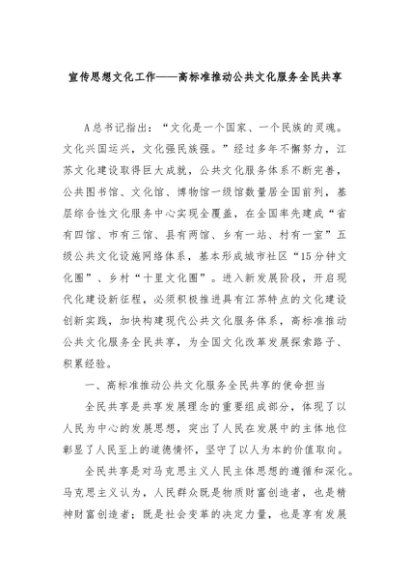 【七哥公文】2024年:宣传思想文化工作——高标准推动公共文化服务全民共享+更多免费公文+VX:QiGeGongWen2024