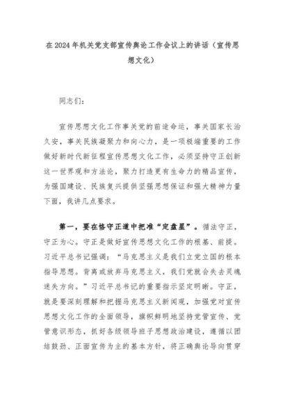 【七哥公文】2024年:在2024年机关党支部宣传舆论工作会议上的讲话(宣传思想文化)+更多免费公文+VX:QiGeGongWen2024