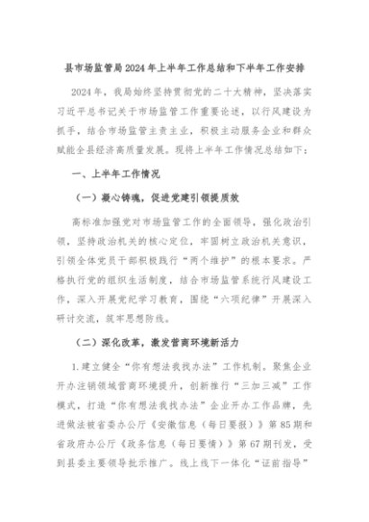【七哥公文】2024年:县市场监管局2024年上半年工作总结和下半年工作安排+更多免费公文+VX:QiGeGongWen2024