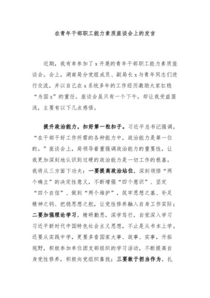 【七哥公文】2024年:在青年干部职工能力素质座谈会上的发言+更多免费公文+VX:QiGeGongWen2024