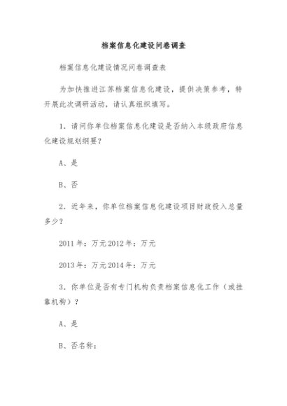 【七哥公文】2024年:档案信息化建设问卷调查+更多免费公文+VX:QiGeGongWen2024