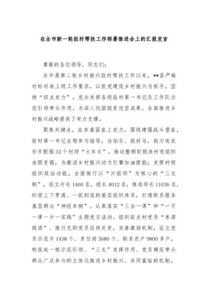 / 【七哥公文】2024年:在全市新一轮驻村帮扶工作部署推进会上的汇报发言+更多免费公文+VX:QiGeGongWen2024
