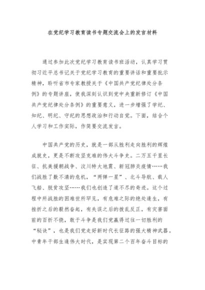 / 【七哥公文】2024年:在党纪学习教育读书专题交流会上的发言材料+更多免费公文+VX:QiGeGongWen2024