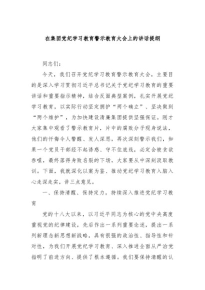/ 【七哥公文】2024年:在集团党纪学习教育警示教育大会上的讲话提纲+更多免费公文+VX:QiGeGongWen2024