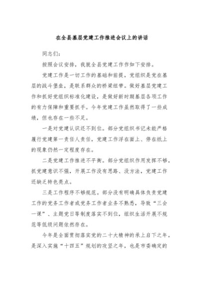 / 【七哥公文】2024年:在全县基层党建工作推进会议上的讲话+更多免费公文+VX:QiGeGongWen2024