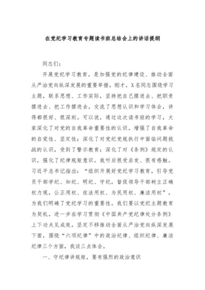 / 【七哥公文】2024年:在党纪学习教育专题读书班总结会上的讲话提纲+更多免费公文+VX:QiGeGongWen2024