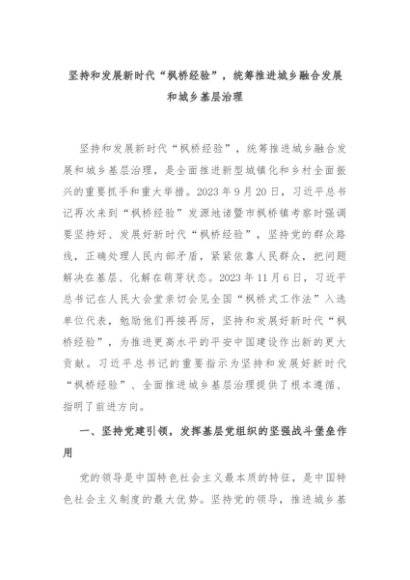 【七哥公文】2024年:坚持和发展新时代“枫桥经验”,统筹推进城乡融合发展和城乡基层治理+更多免费公文+VX:QiGeGongWen2024