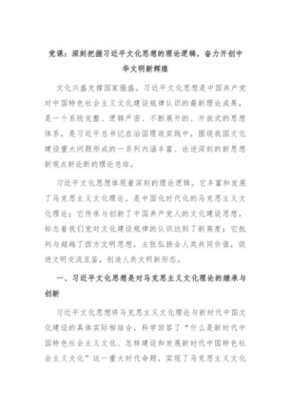 【七哥公文】2024年:党课:深刻把握习近平文化思想的理论逻辑,奋力开创中华文明新辉煌+更多免费公文+VX:QiGeGongWen2024