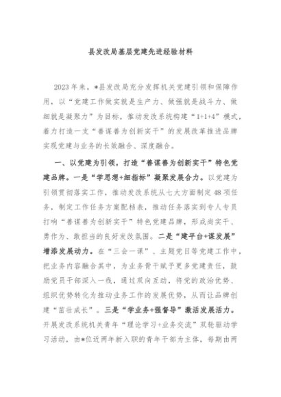 / 【七哥公文】2024年:县发改局基层党建先进经验材料+更多免费公文+VX:QiGeGongWen2024