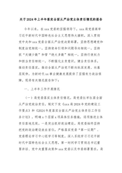 【七哥公文】2024年:关于2024年上半年落实全面从严治党主体责任情况的报告+更多免费公文+VX:QiGeGongWen2024