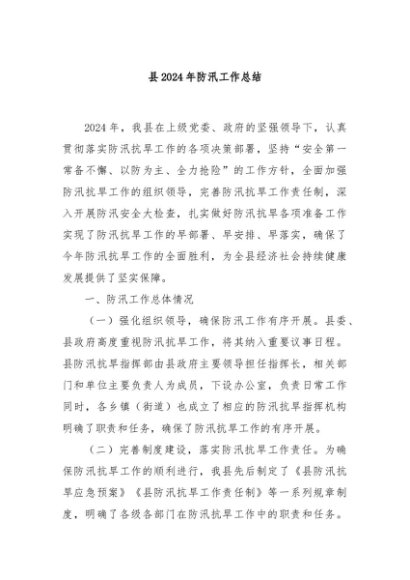 / 【七哥公文】2024年:县2024年防汛工作总结+更多免费公文+VX:QiGeGongWen2024