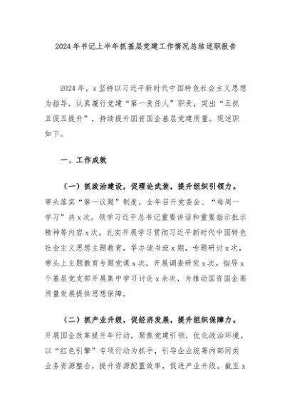 【七哥公文】2024年:2024年书记上半年抓基层党建工作情况总结述职报告+更多免费公文+VX:QiGeGongWen2024