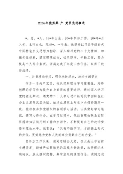 / 【七哥公文】2024年:2024年优秀共 产 党员先进事迹+更多免费公文+VX:QiGeGongWen2024