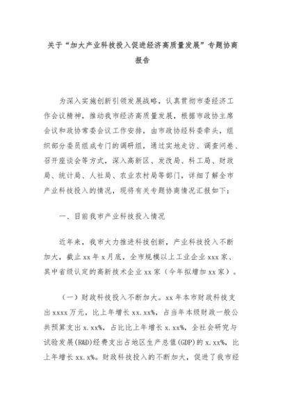【七哥公文】2024年:关于“加大产业科技投入促进经济高质量发展”专题协商报告+更多免费公文+VX:QiGeGongWen2024